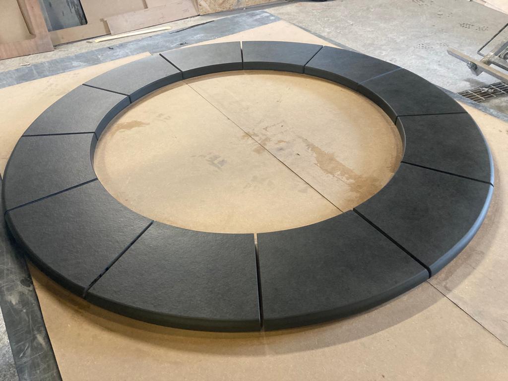 We were delighted to support the creation of a bespoke slate firepit for a private home in Stockbridge, Hampshire, by supplying the circular state copings used in its construction.