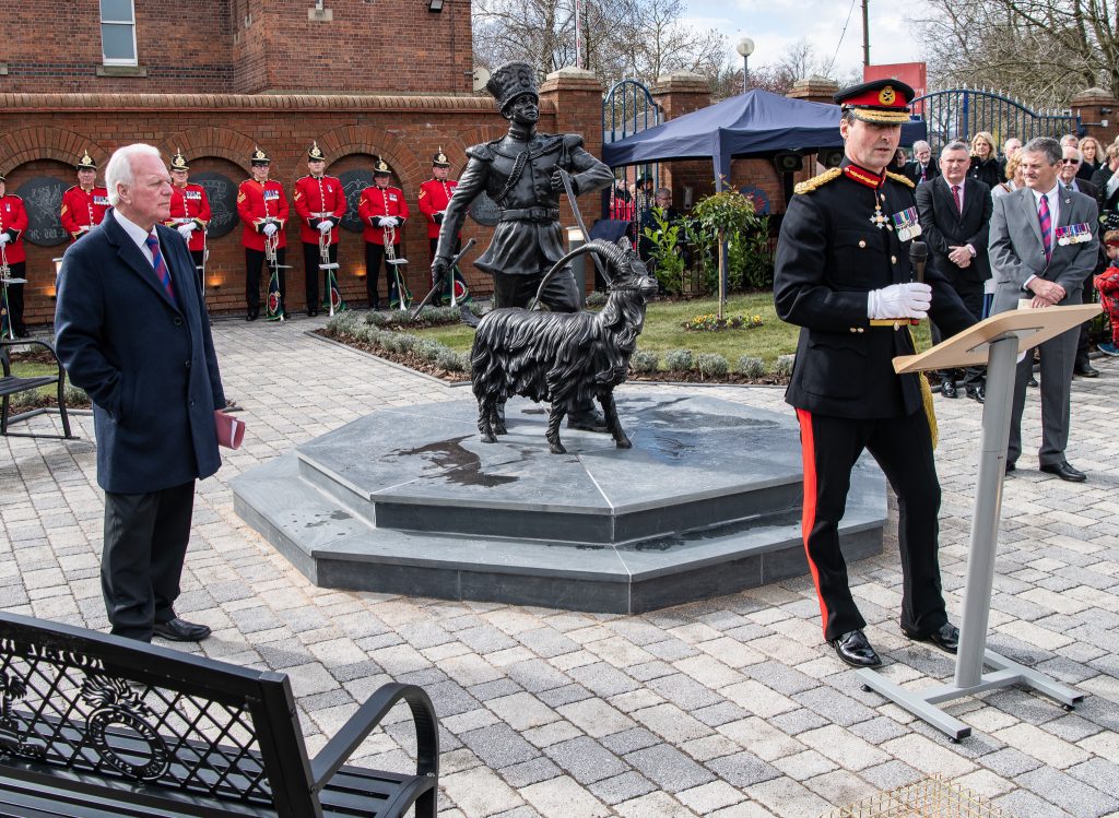 We also provided a Ravendale octagonal base and centrepiece to support a life-size statue of a Royal Welsh Fusilier and regimental goat, created by sculptor Nick Elphick. The statue now stands proudly outside Hightown Barracks in Wrexham, with the slate base providing both strength and a sympathetic finish for such a commemorative landmark.