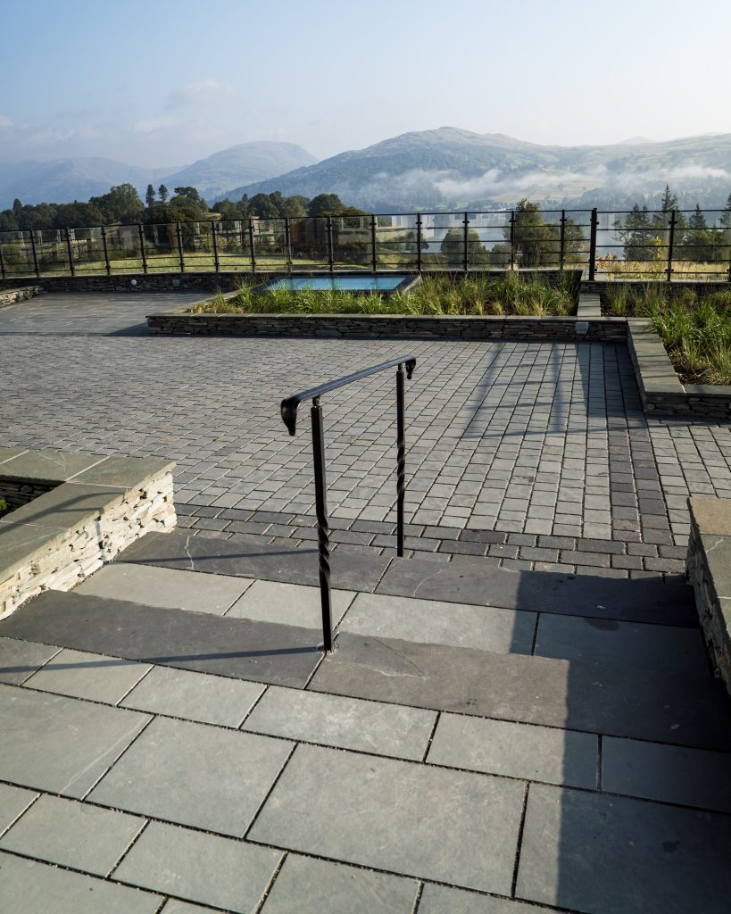 The result is a striking landscaped area that combines practicality with beauty, framed by the Lake District views. From the bespoke paving to the seating and step layouts, every element reflects the care and collaboration that went into the project.